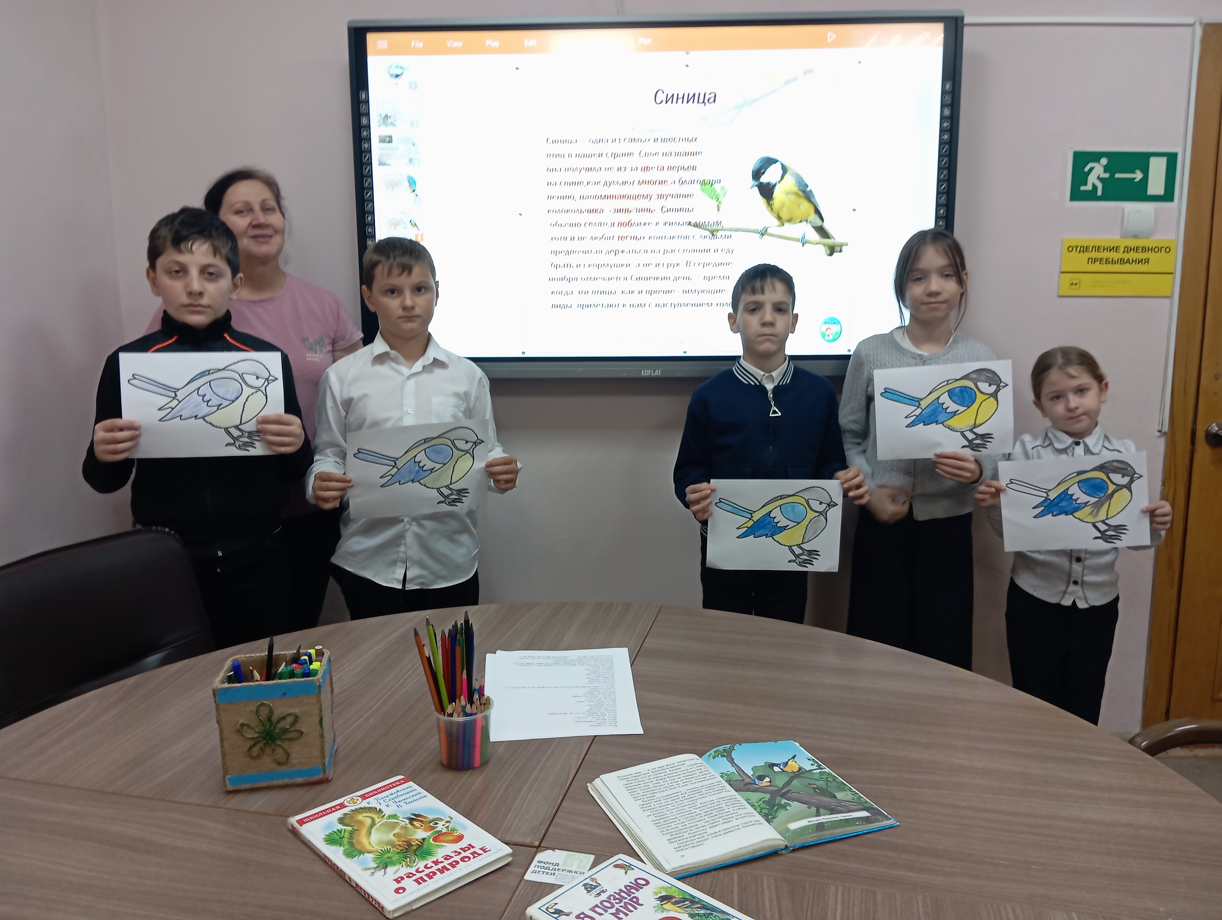 В ГКУСО « Курский СРЦН «Надежда», в рамках программы «Я – гражданин России» прошло фольклорно — художественное развлечение «Синичкин день». Ребята в познавательно-игровой форме находили ответы на вопросы, отгадывали загадки и пословицы, читали стихи, играли и узнали историю русского народного праздника. В этот люди давали обещание тем птицам, которые остаются зимовать, заботиться о них. В народе существуют приметы, связанные с птицами. Свистит синица — на ясный день. Синицы утром пищат — на ночной мороз. Завершилось развлечение просмотром документального фильма «Зимующие птицы» и рисованием синички.