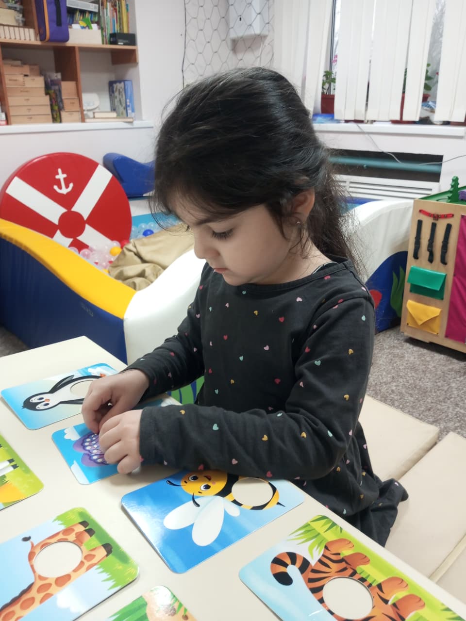 Ребята подбирают пятнышки подходящего окраса для каждого животного, отгадывают загадки в форме забавных стихотворений, которые вызывают улыбку у детей. В процессе игры развивается мелкая моторика зрительное восприятие и воображение, обогащается словарный запас ребенка.