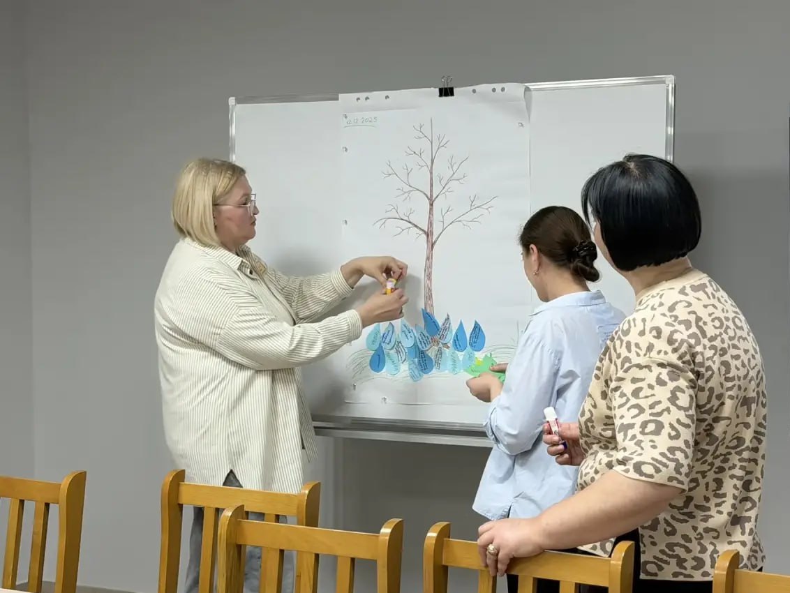 Педагог-психолог отделения дневного пребывания ГКУСО «Курский СРЦН «Надежда» О.А. Быстрова рассказала о подростковом суициде. Сильное эмоциональное впечатление на присутствующих оказал видеоролик «Я вам мешаю…», герой которого подросток, страдающий от неблагоприятной внутрисемейной ситуации, для которого все закончилось благополучно, но в реальной жизни, к сожалению, так бывает не всегда. Психолог предложила родителям и педагогам в рамках выполнения ресурсного упражнения «Сухое дерево» проанализировать негативные факторы, влияющие на возникновение суицидального риска, обдумать ресурсы, которые могут нивелировать суицидальную опасность и спрогнозировать ожидаемый отклик от подростка в кризисе. Трансформация дерева, из сухого и безжизненного в яркое, зеленое, живое растение наглядно показало влияние отрицательных и положительных факторов на растущую личность подростков. Оксана Александровна подробно остановилась на рекомендациях родителям и пояснила где можно получить квалифицированную бесплатную психологическую помощь, как детям, так и взрослым в сложной или критической ситуации.