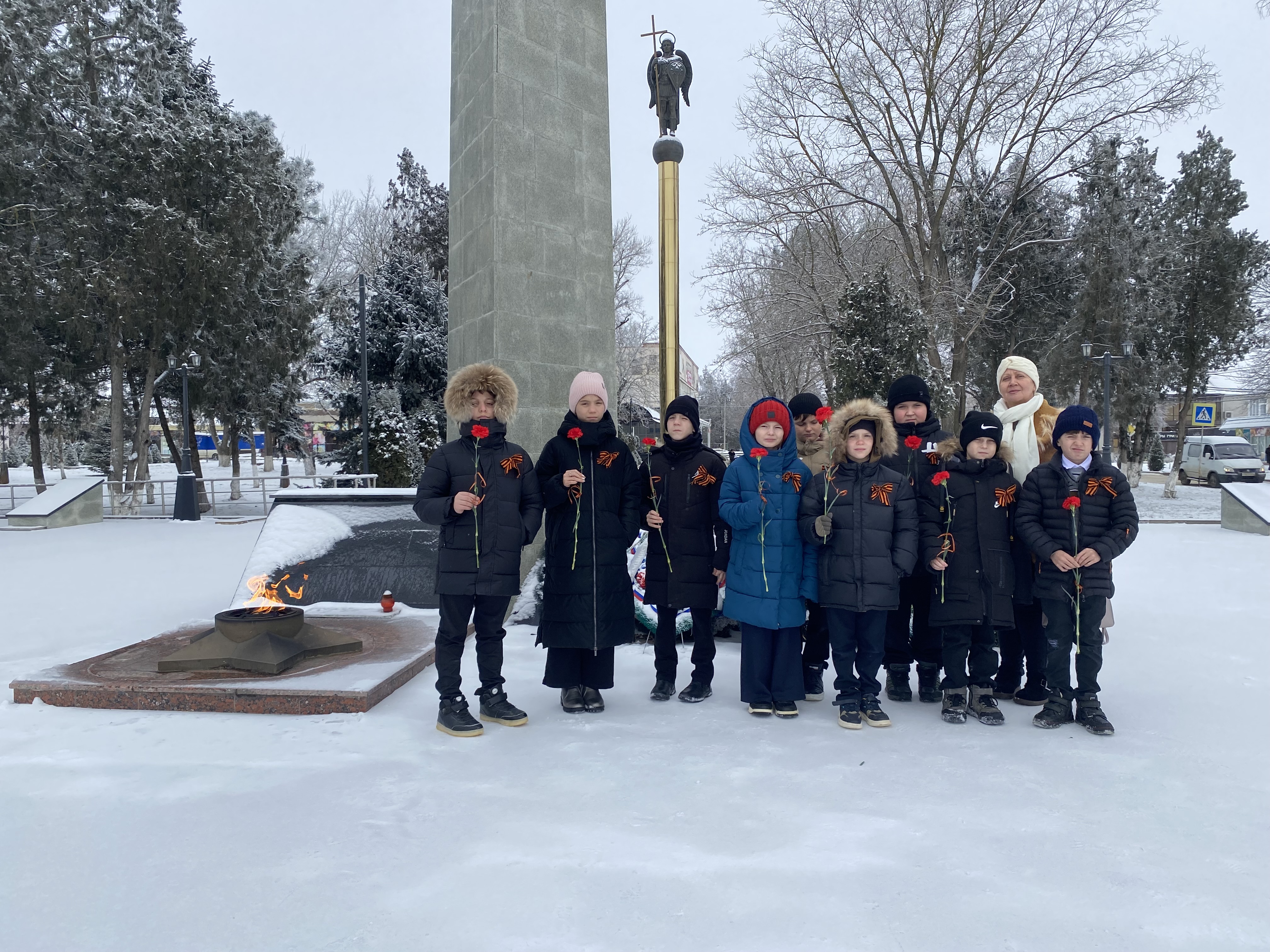 Ребята и педагоги присоединились к акции «Гордись Отчизна славными сынами!», посетили Мемориал Славы станицы Курской, где почтили память героев минутой молчания, зажгли свечи-памяти и возложили цветы к Вечному Огню.