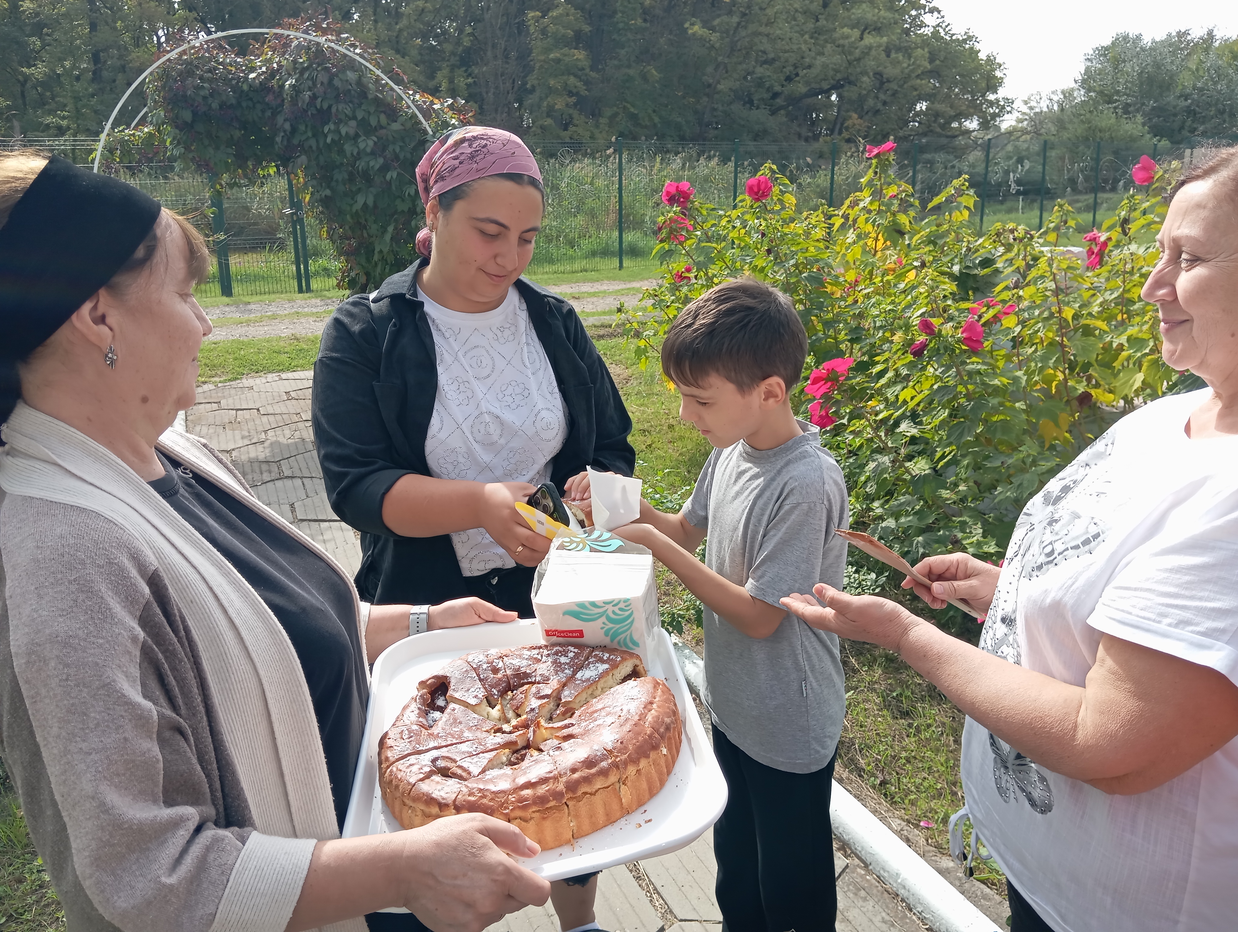 В ГКУСО « Курский СРЦН «Надежда», прошла акция «Полновесный каравай Ставрополья». Ребята и педагоги угощали жителей и гостей пышным, вкусным караваем, с румяной корочкой. Участники желали землякам процветания и благополучия, вручали красочные «Золотые сердца» с пожеланиями.
